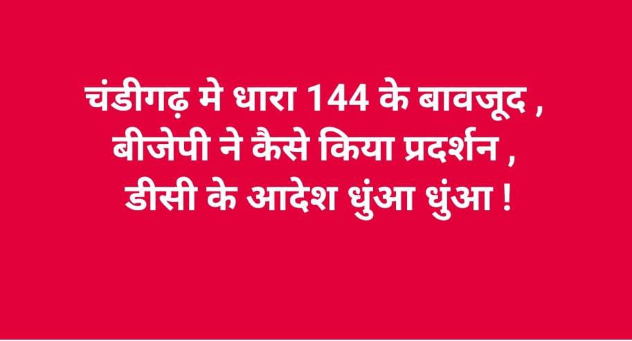 क्या नियम कायदे कानून सिर्फ और सिर्फ विपक्ष के लिए ही है । शायद चंडीगढ़ में नियम कायदे कानून सिर्फ और सिर्फ विपक्ष के लिए ही है सत्ता पक्ष के लिए नहीं । क्योंकि अगर ऐसा होता तो आज भाजपा के कार्यकर्ताओं को जिन्होंने पश्चिम बंगाल की एक घटना को लेकर प्रदर्शन किया तो उन्हें गिरफ्तार क्यों नहीं कर लिया जाता । क्योंकि शहर में धारा 144 लगी हुई है । और धारा 144 का मतलब होता है किसी जगह पर पांच व्यक्ति एक साथ इकट्ठे नहीं हो सकते किसी प्रकार का धरना प्रदर्शन नहीं किया जा सकता । यह आदेश खुद चंडीगढ़ के उपायुक्त विनय प्रताप सिंह द्वारा जारी किए गए हैं और यह आदेश 60 दिन के लिए शहर मे 11 फरवरी से लागू है । मगर संभवत यह आदेश सिर्फ और सिर्फ विपक्ष के लिए है । सत्ता पक्ष के लिए नहीं यह कहना है कांग्रेस की महिला अध्यक्ष दीपा दुबे का ।