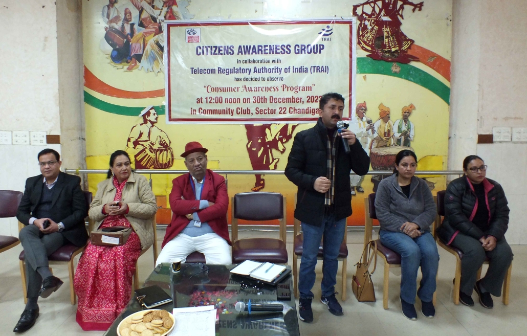 चंडीगढ़, 30 दिसंबर 2023ः टेलीकाॅम रेगुलेटरी ऑथोरिटी ऑफ इंडिया (ट्राई) के सहयोग से सिटीजन्स अवेयरनेस ग्रुप ने सेक्टर 22 के काॅम्युनिटी सेंटर में दूरसंचार ग्राहकों के अधिकारों और विशेषाधिकारों के बारे में जागरूकता पैदा करने के लिए पर एक विशेष सत्र का आयोजन किया। जिसमें बड़ी संख्या में दूरसंचार उपभोक्ताओं, दूरसंचार सेवा प्रदाताओं के प्रतिनिधियों, उपभोक्ता संगठनों के प्रतिनिधियों ने भाग लिया। इनके अलावा सत्र में वरिष्ठ दूरसंचार अधिकारियों मौजूद रहे।