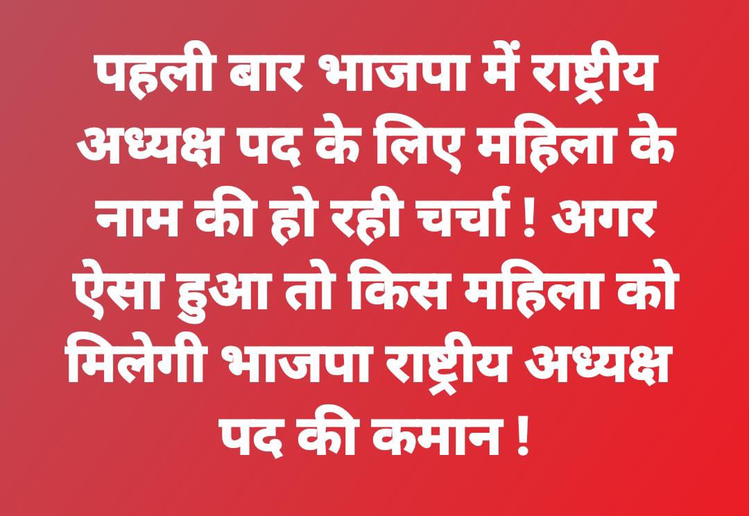 भाजपा में पहली बार राष्ट्रीय अध्यक्ष पद के लिए किसी महिला के नाम की चर्चा जोरों पर !