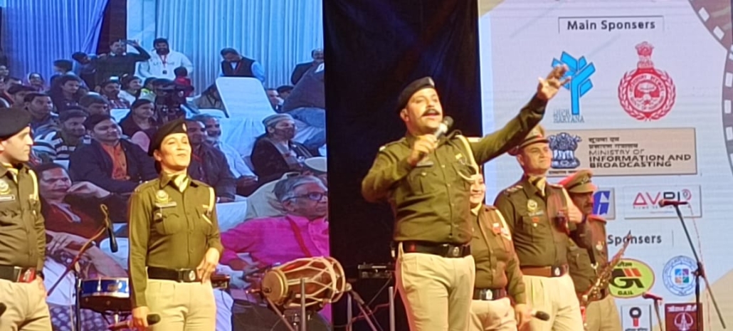 पंचकूला फरवरी 24: ये गुलिस्तां हमें जान से प्यारा है..संदेशे आते हैं…मेरा रंग दे बसंती चोला रंग दे…वंदे मातरम और देश भक्ति के गीतों से सुरमय हुआ दादा लख्मी चंद सभागार। यहां हिमाचल पुलिस बैंड हारमनी आफ द पाइन ने पांचवें फिल्म फेस्टिवल के दूसरे दिन की शाम को देश भक्ति के गीतों के साथ सुर संगम में डुबो दिया।देश-दुनिया में अपने गीत संगीत से हिमाचल पुलिस के इस बैंड की धूम है और इस बैंड ने पंचकूला के रेड बिशप कांप्लेक्स में चल रहे तीन दिवसीय फिल्म फेस्टिवल को रंगारंग बनाया। कार्यक्रम में राष्ट्रीय स्वयंसेवक संघ के सह सरकार्यवाह डा.मनमोहन वैद्य,उद्योगपति पवन जिंदल,नरेंद्र ठाकुर,विजय कुमार,भारतीय चित्र साधना के अध्यक्ष प्रो.बीके कुठियाला,आयोजन समिति के कार्यकारी अध्यक्ष राजेश कुमार,सचिव सुरेंद्र कुमार उपस्थित रहे। खचाखच भरे सभागार में संगीत प्रेमी वंस मोर की डिमांड करते दिखे। गीत संगीत का यहां एेसा कारवां चला कि भारतीय सिनेमा की सुप्रसिद्ध गीतों पर दर्शक जमकर थिरके। हर कोई इस माहौल का आनंद लेने के साथ साथ अपने मोबाइल कैमरों में कैद करने को लेकर लालायित दिखा। जिला सिरमौर के विजय कुमार व मनमोहन शर्मा और हिमाचल पुलिस की 15 सदस्यीय टीम की प्रतिभा देख हर कोई मंत्र मुग्ध था। उल्लेखनीय है कि हिमाचल पुलिस बैंड के कप्तान विजय कुमार व मनमोहन शर्मा कलर्स टीवी के रियल्टी शो ‘हुनरबाज’ में धमाकेदार एंट्री से सुर्खियों में आए थे। उसके बाद इनका पुलिस बैंड ‘हारमनी आफ द पाइन्स’लगातार अनेक मंचों पर धूम मचा चुका है।मंच पर जब इस टीम ने खाकी पहन हुड दबंग दबंग किया तो दर्शकों के सामने थे रीयल हीरो।